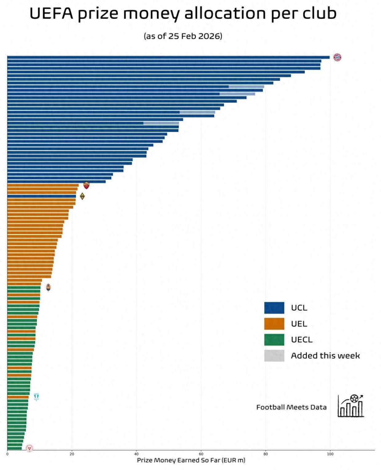欧冠奖金曝光 小组赛踢完拜仁就拿1亿欧 倒数第一也超2000万欧